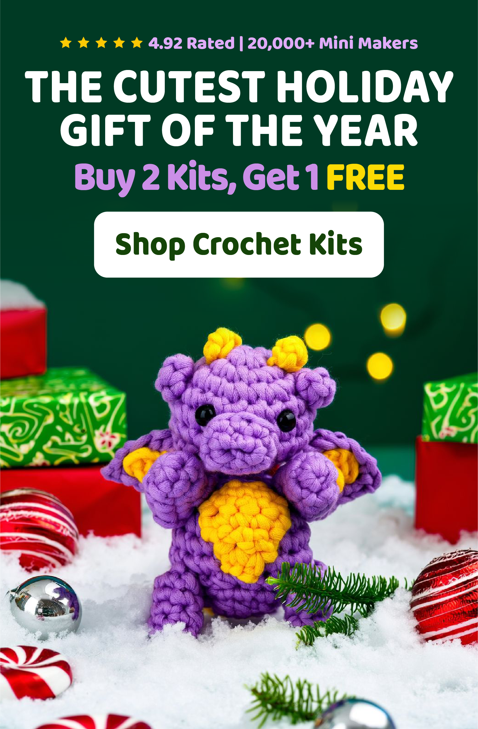 Discover adorable crochet kits featuring characters you won't find anywhere else. Each kit includes pre-started yarn, tools, and step-by-step videos to help you craft your newest mini obsession.