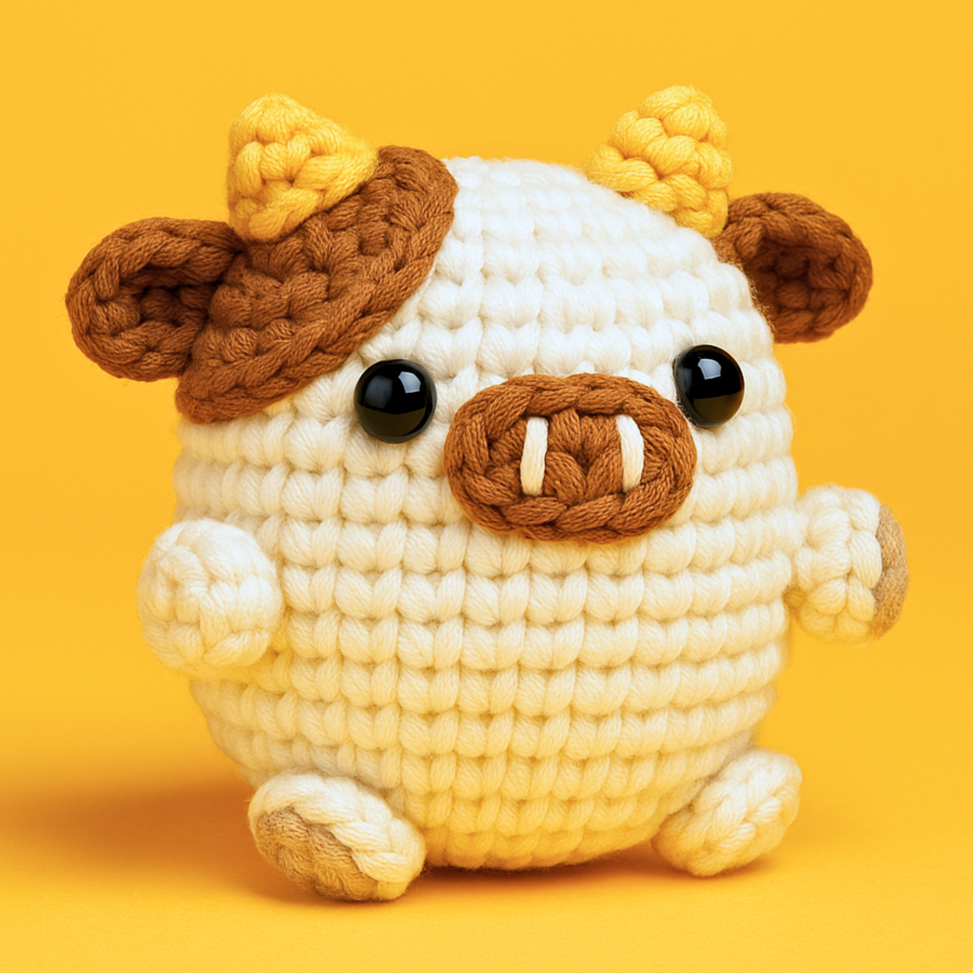 Crocheted in soft cream and brown yarn with gentle eyes and a perfectly round nose, Angus is your go-to for calm days and cozy company.