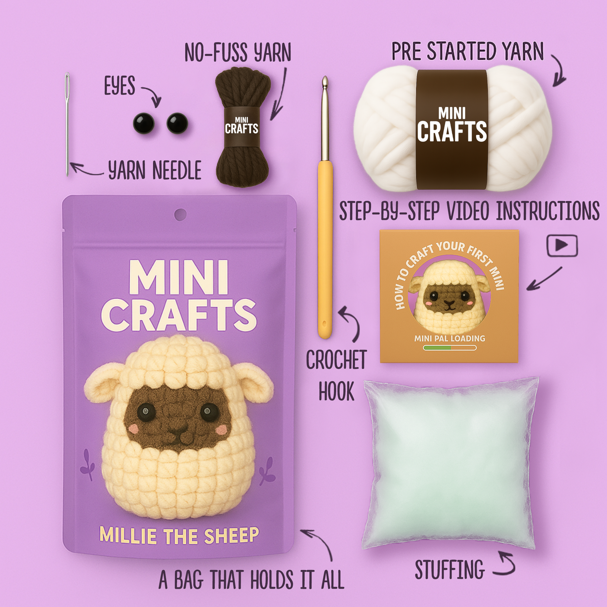 Absolutely – over 10,000+ have learned to crochet with Mini Crafts, and you’re next! Each kit comes with super clear, step-by-step video tutorials designed for total beginners. Plus, it’s pre-started to skip the frustrating part and get you straight into the fun.