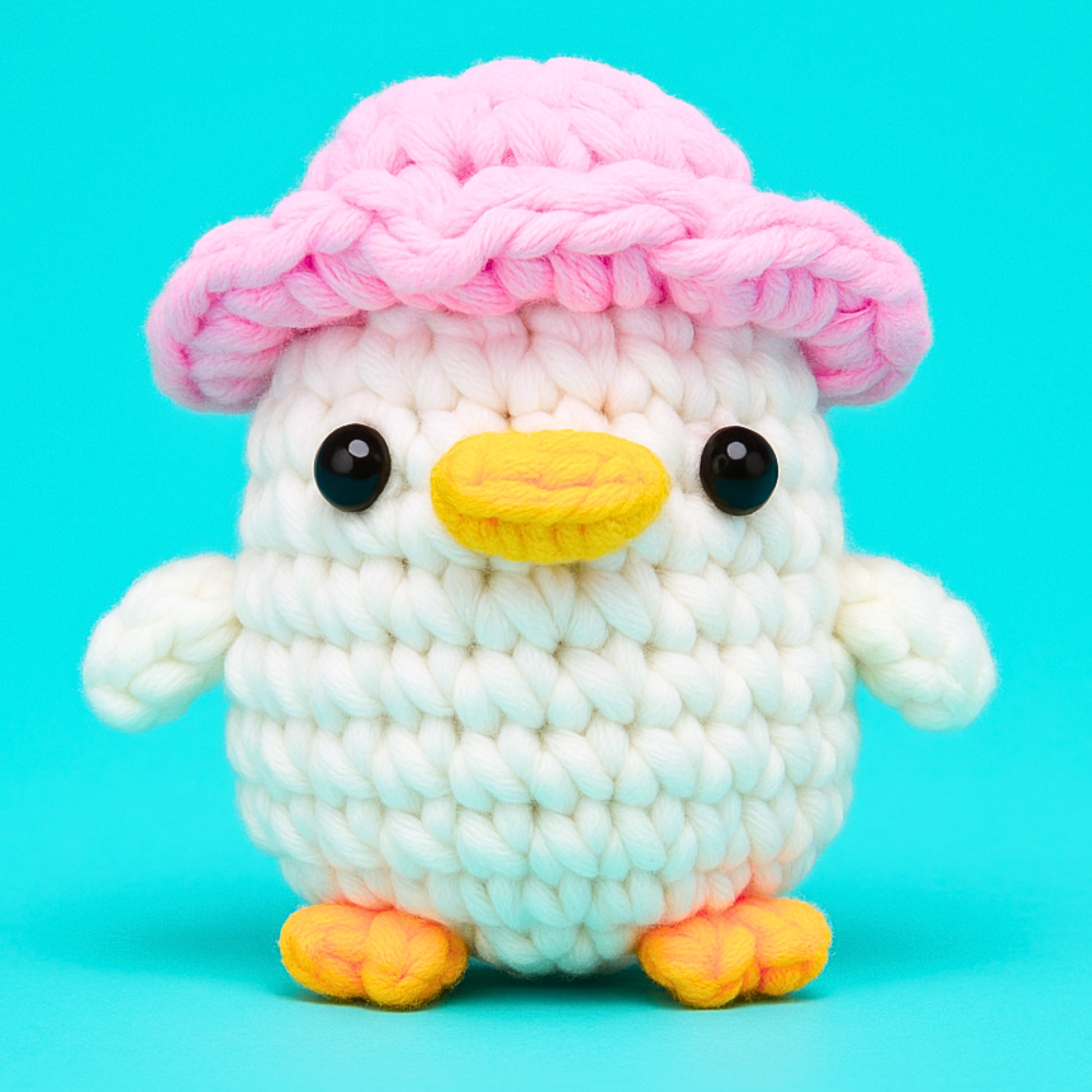 Crocheted in soft white yarn with a relaxed little waddle and a chilled-out expression, Momo brings pure calm energy to your crew.