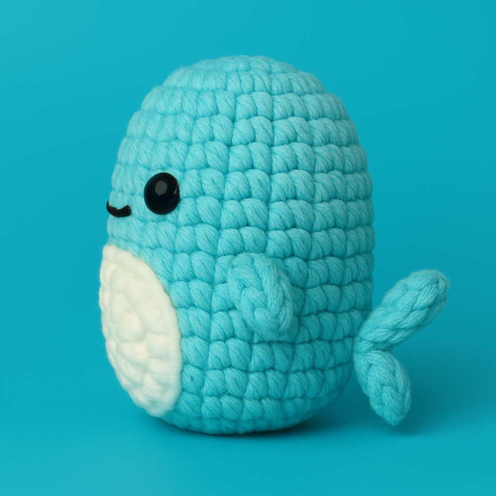 Whaley might be the chillest sea creature you’ve ever met. With a belly full of fluff and a smile that says “no stress,” he’s basically the crochet version of a deep-sea spa day.